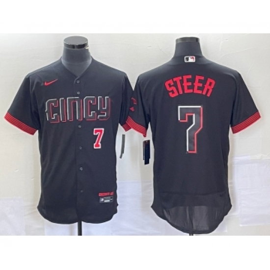 Men's Nike Cincinnati Reds #7 Spencer Steer Black 2023 City Connect Cool Base Stitched Baseball Jersey