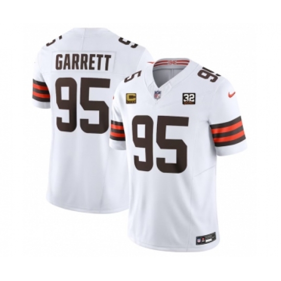 Men's Nike Cleveland Browns #95 Myles Garrett White 2023 F.U.S.E. 4-Star C And Jim Brown Memorial Vapor Untouchable Jersey