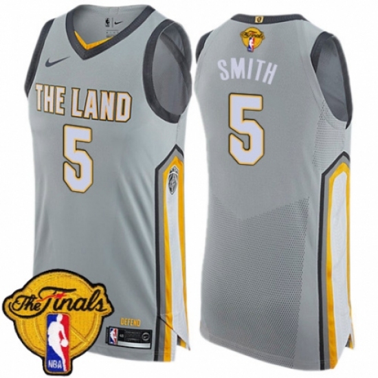 Men's Nike Cleveland Cavaliers #5 J.R. Smith Authentic Gray 2018 NBA Finals Bound NBA Jersey - City Edition