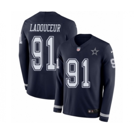 >Men's Nike Dallas Cowboys #91 L. P. Ladouceur Limited Navy Blue Therma Long Sleeve NFL Jersey