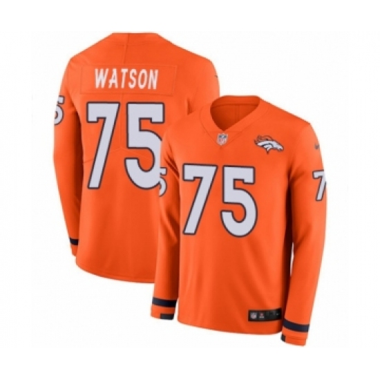 >Men's Nike Denver Broncos #75 Menelik Watson Limited Orange Therma Long Sleeve NFL Jersey