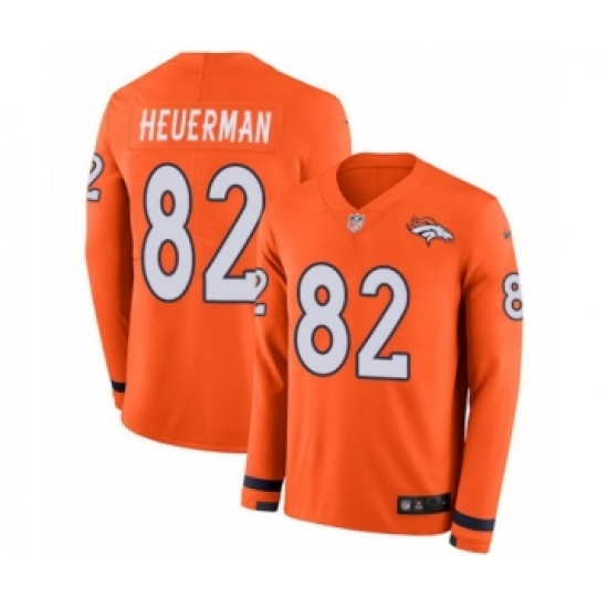 >Men's Nike Denver Broncos #82 Jeff Heuerman Limited Orange Therma Long Sleeve NFL Jersey