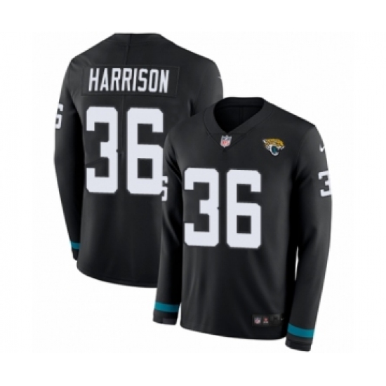 >Men's Nike Jacksonville Jaguars #36 Ronnie Harrison Limited Black Therma Long Sleeve NFL Jersey
