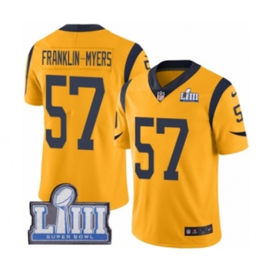 >Men's Nike Los Angeles Rams #57 John Franklin-Myers Limited Gold Rush Vapor Untouchable Super Bowl LIII Bound NFL Jersey
