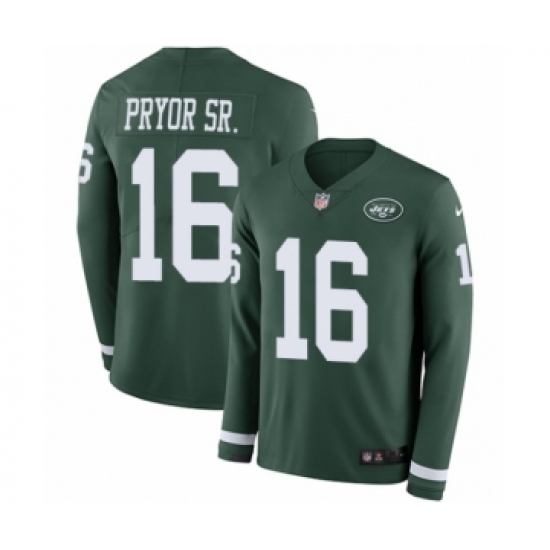 >Men's Nike New York Jets #16 Terrelle Pryor Sr. Limited Green Therma Long Sleeve NFL Jersey