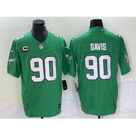 Men's Nike Philadelphia Eagles #90 Jordan Davis Green 2023 F.U.S.E. Vapor Limited Throwback Stitched Football Jersey