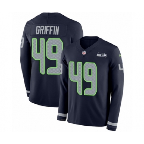 >Men's Nike Seattle Seahawks #49 Shaquem Griffin Limited Navy Blue Therma Long Sleeve NFL Jersey