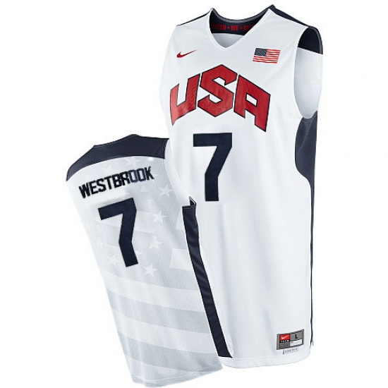 Men's Nike Team USA #7 Russell Westbrook Authentic White 2012 Olympics Basketball Jersey