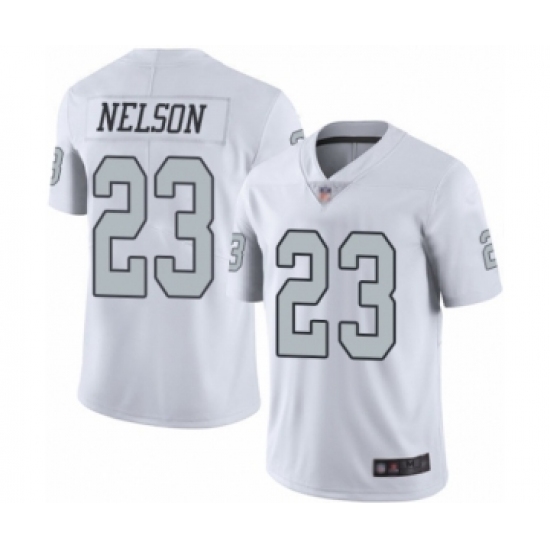 >Men's Oakland Raiders #23 Nick Nelson Limited White Rush Vapor Untouchable Football Jersey