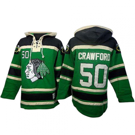 Men's Old Time Hockey Chicago Blackhawks #50 Corey Crawford Premier Green St. Patrick's Day McNary Lace Hoodie NHL Jersey