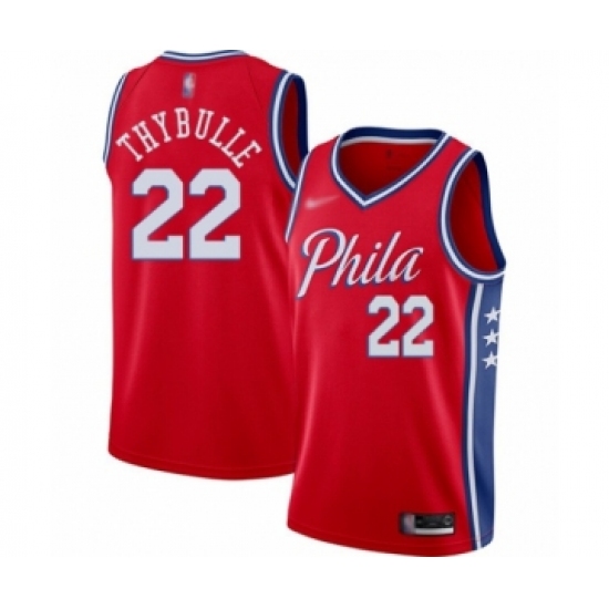 >Men's Philadelphia 76ers #22 Mattise Thybulle Authentic Red Finished Basketball Jersey - Statement Edition