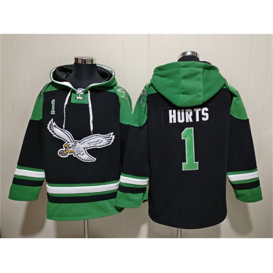 Men's Philadelphia Eagles #1 Jalen Hurts Black Ageless Must-Have Lace-Up Pullover Hoodie