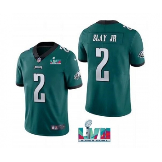 >Men's Philadelphia Eagles #2 Darius Slay JR Green Super Bowl LVII Patch Vapor Untouchable Limited Stitched Jersey