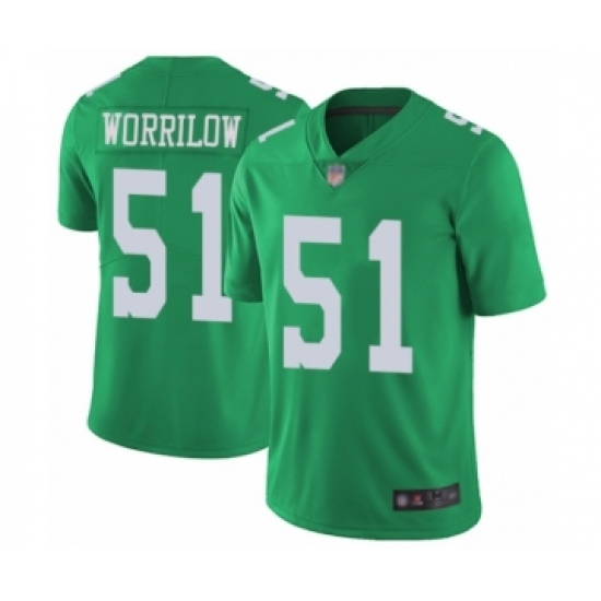 >Men's Philadelphia Eagles #51 Paul Worrilow Limited Green Rush Vapor Untouchable Football Jersey