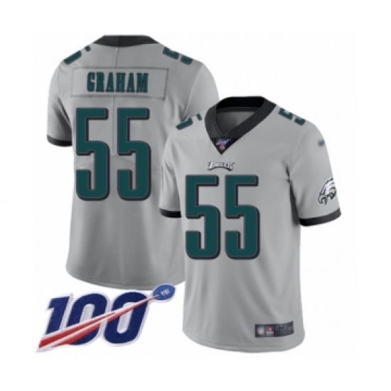 >Men's Philadelphia Eagles #55 Brandon Graham Limited Silver Inverted Legend 100th Season Football Jersey