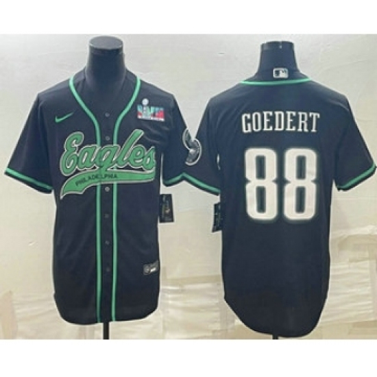 Men's Philadelphia Eagles #88 Dallas Goedert Black With Super Bowl LVII Patch Cool Base Stitched Baseball Jersey