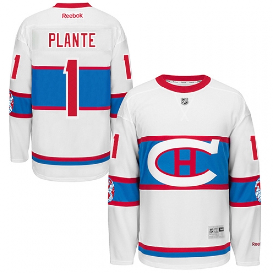 Home>NHL>Montreal Canadiens>Jacques Plante>Men's Reebok Montreal Canadiens #1 Jacques Plante Premier White 2016 Winter Classic NHL Jersey