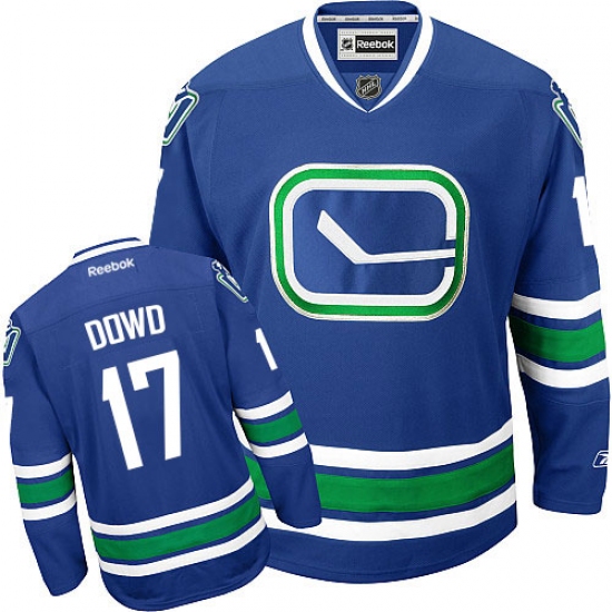 >Men's Reebok Vancouver Canucks #17 Nic Dowd Authentic Royal Blue Third NHL Jersey