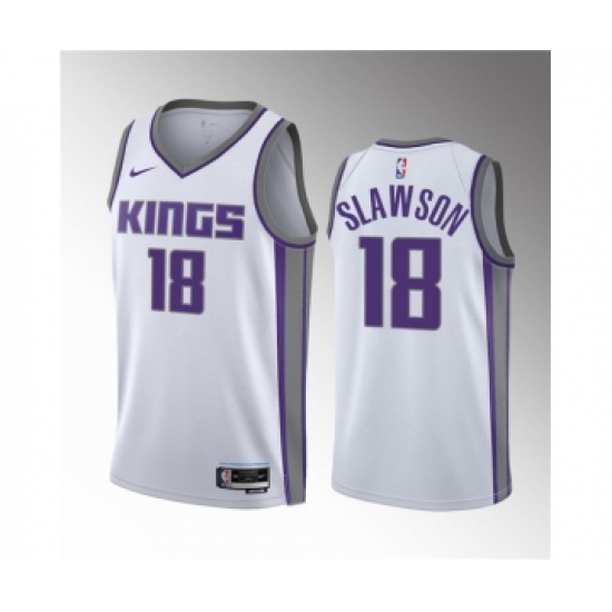 >Men's Sacramento Kings #18 Jalen Slawson White 2023 Draft Association Edition Stitched Jersey