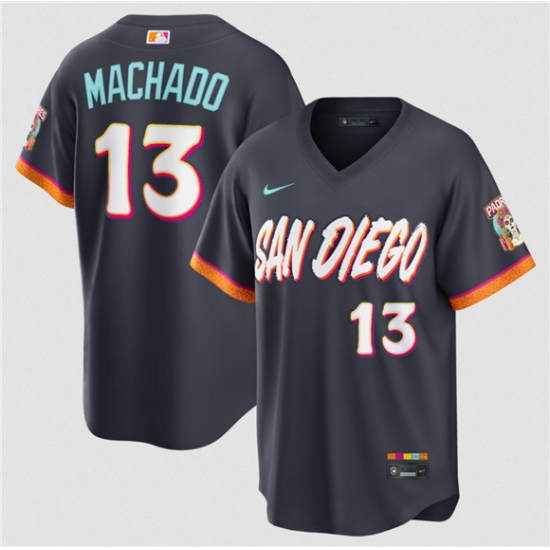 >Men's San Diego Padres #13 Manny Machado Obsidian 2026 City Connect Stadium Limited Stitched Baseball Jersey