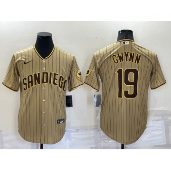 Men's San Diego Padres #19 Tony Gwynn Number Brown Stitched MLB Flex Base Nike Jersey