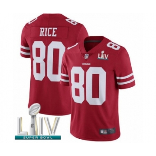 Men's San Francisco 49ers #80 Jerry Rice Red Team Color Vapor Untouchable Limited Player Super Bowl LIV Bound Football Jersey