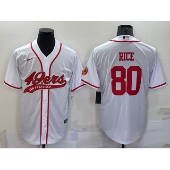 Men's San Francisco 49ers #80 Jerry Rice White With Patch Cool Base Stitched Baseball Jersey