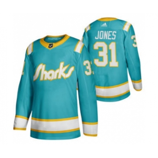 Men's San Jose Sharks #31 Martin Jones 2020 Throwback Authentic Player Hockey Jersey