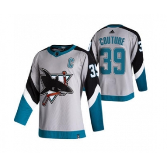Men's San Jose Sharks #39 Logan Couture Grey 2020-21 Reverse Retro Alternate Hockey Jersey