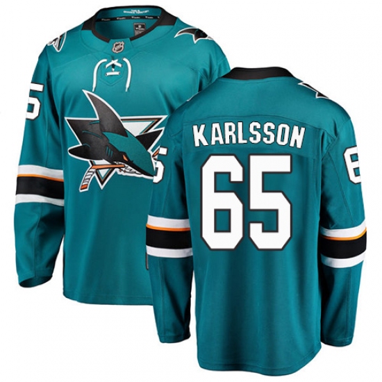 Men's San Jose Sharks #65 Erik Karlsson Fanatics Branded Teal Green Home Breakaway NHL Jersey