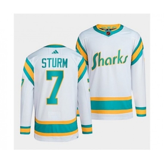Men's San Jose Sharks #7 Nico Sturm White 2022 Reverse Retro Stitched Jersey