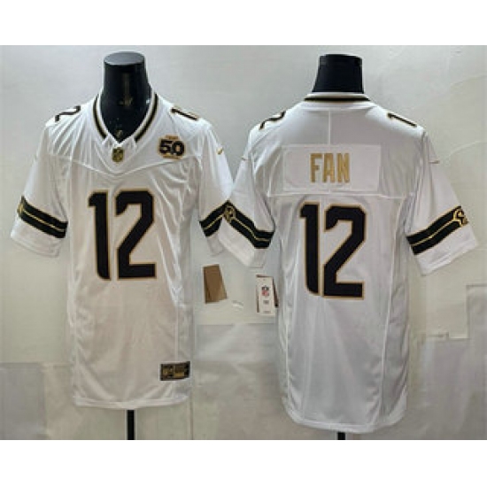 Men's Seattle Seahawks #12 Fan White Gold 2025 FUSE 50th Season Limited Stitched Jersey