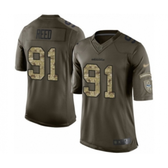 >Men's Seattle Seahawks #91 Jarran Reed Elite Green Salute to Service Football Jersey