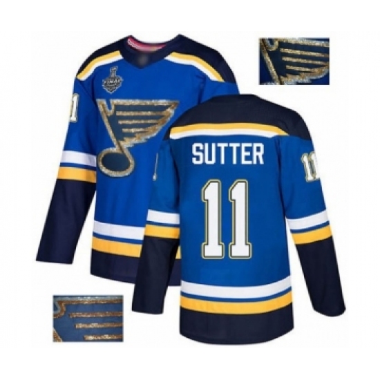Men's St. Louis Blues #11 Brian Sutter Authentic Royal Blue Home 2019 Stanley Cup Final Bound Hockey Jersey