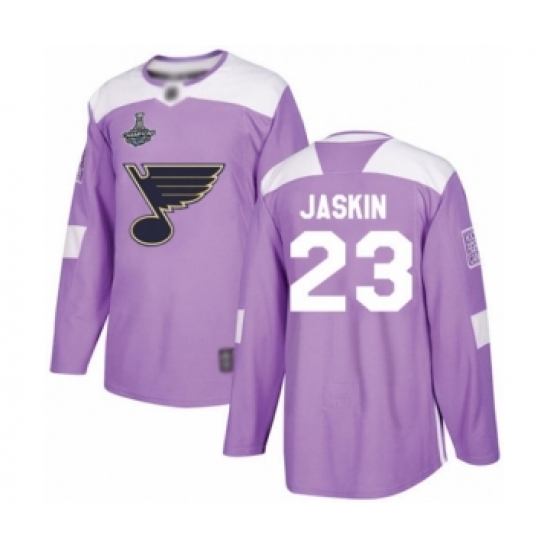 >Men's St. Louis Blues #23 Dmitrij Jaskin Authentic Purple Fights Cancer Practice 2019 Stanley Cup Champions Hockey Jersey
