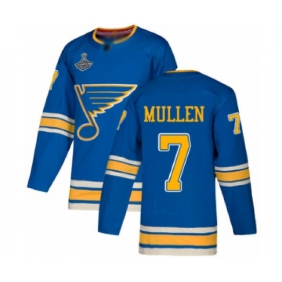 Men's St. Louis Blues #7 Joe Mullen Authentic Royal Blue Home 2019 Stanley Cup Champions Hockey Jersey