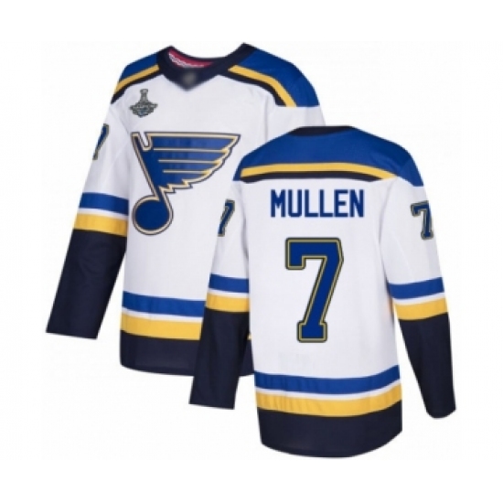 Men's St. Louis Blues #7 Joe Mullen Authentic White Away 2019 Stanley Cup Champions Hockey Jersey