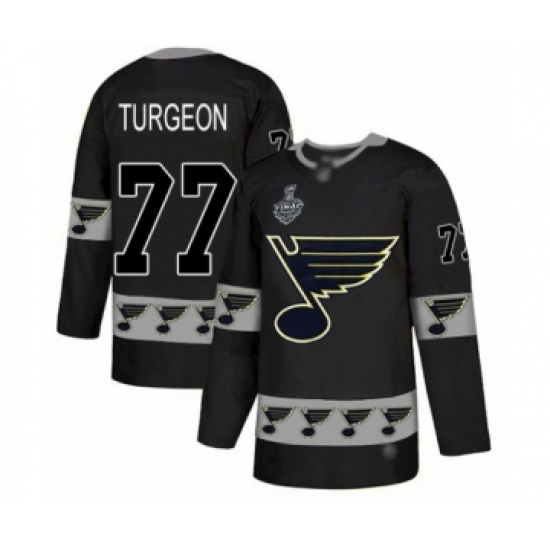 Men's St. Louis Blues #77 Pierre Turgeon Authentic Black Team Logo Fashion 2019 Stanley Cup Final Bound Hockey Jersey