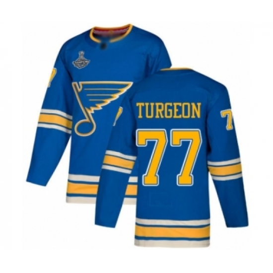 Men's St. Louis Blues #77 Pierre Turgeon Authentic Royal Blue Home 2019 Stanley Cup Champions Hockey Jersey