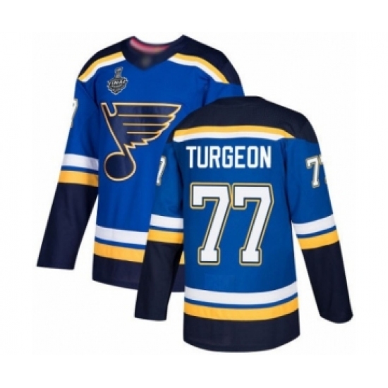 >Men's St. Louis Blues #77 Pierre Turgeon Authentic Royal Blue Home 2019 Stanley Cup Final Bound Hockey Jersey