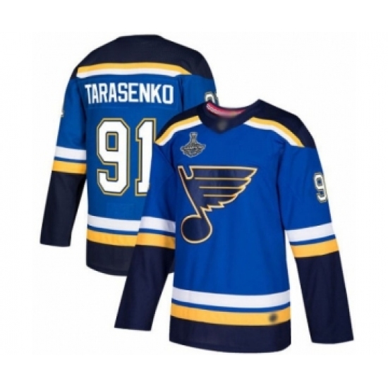Men's St. Louis Blues #91 Vladimir Tarasenko Authentic Royal Blue Home 2019 Stanley Cup Champions Hockey Jersey
