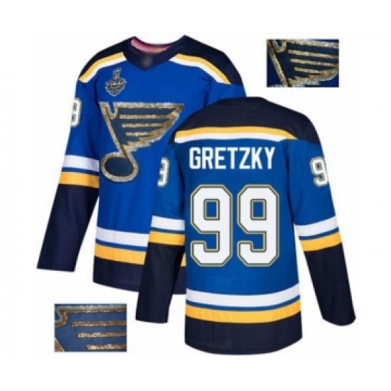Men's St. Louis Blues #99 Wayne Gretzky Authentic Royal Blue Home 2019 Stanley Cup Champions Hockey Jersey