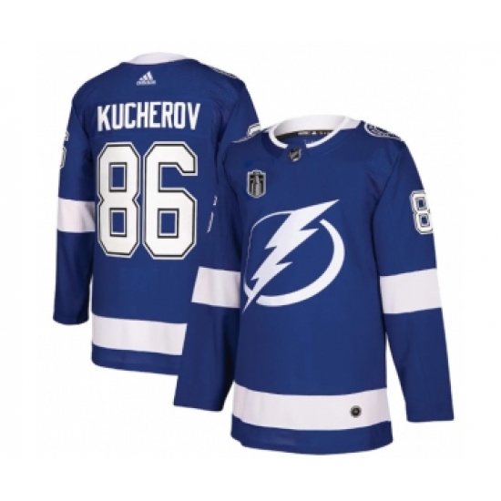 Men's Tampa Bay Lightning #86 Nikita Kucherov 2022 Blue Stanley Cup Final Patch Stitched Jersey