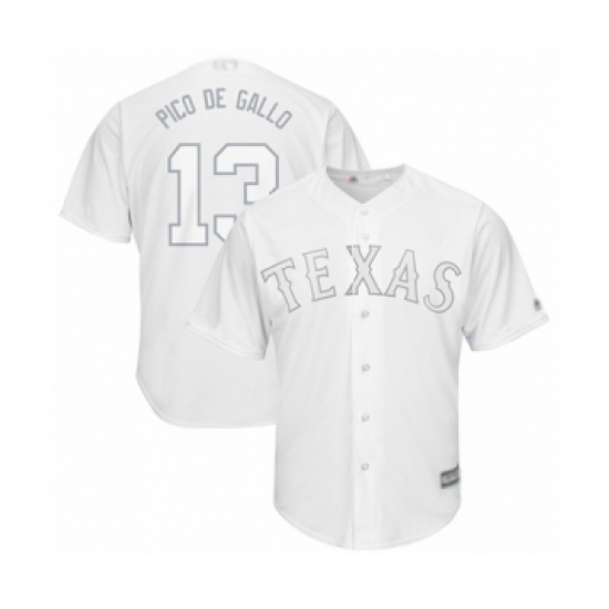 >Men's Texas Rangers #13 Joey Gallo Pico de Gallo Authentic White 2019 Players Weekend Baseball Jersey