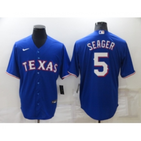 >Men's Texas Rangers #5 Corey Seager Blue Stitched MLB Cool Base Nike Jersey