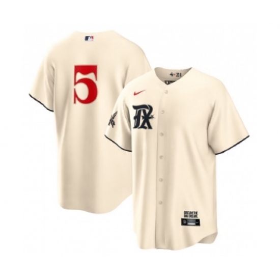 >Men's Texas Rangers #5 Corey Seager Cream 2023 City Connect Cool Base Stitched Baseball