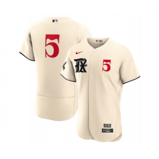 >Men's Texas Rangers #5 Corey Seager Cream 2023 City Connect Flex Base Stitched Baseball Jersey