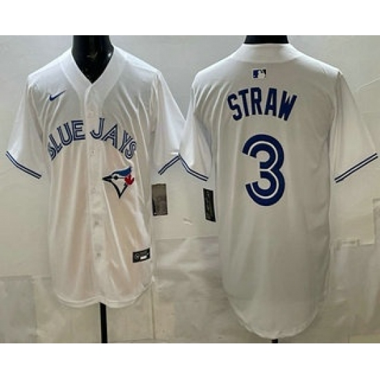 >Men's Toronto Blue Jays #3 Myles Straw White Limited Jersey