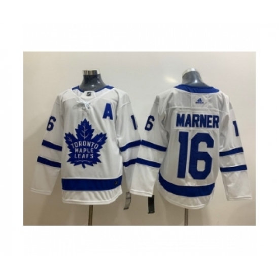 >Men's Toronto Maple Leafs #16 Mitchell Marner White With A Patch Adidas Stitched NHL Jersey