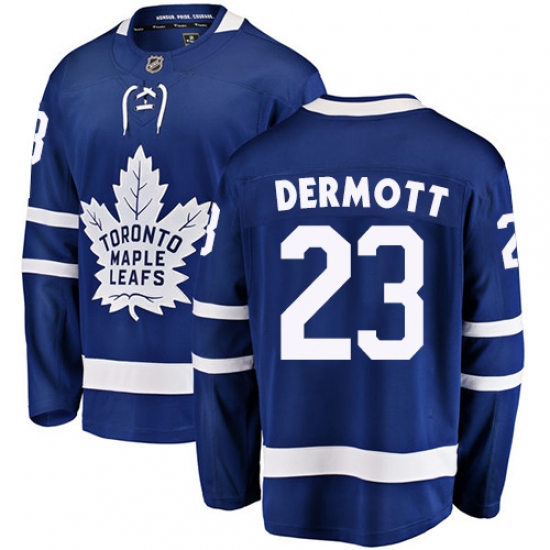 >Men's Toronto Maple Leafs #23 Travis Dermott Authentic Royal Blue Home Fanatics Branded Breakaway NHL Jersey